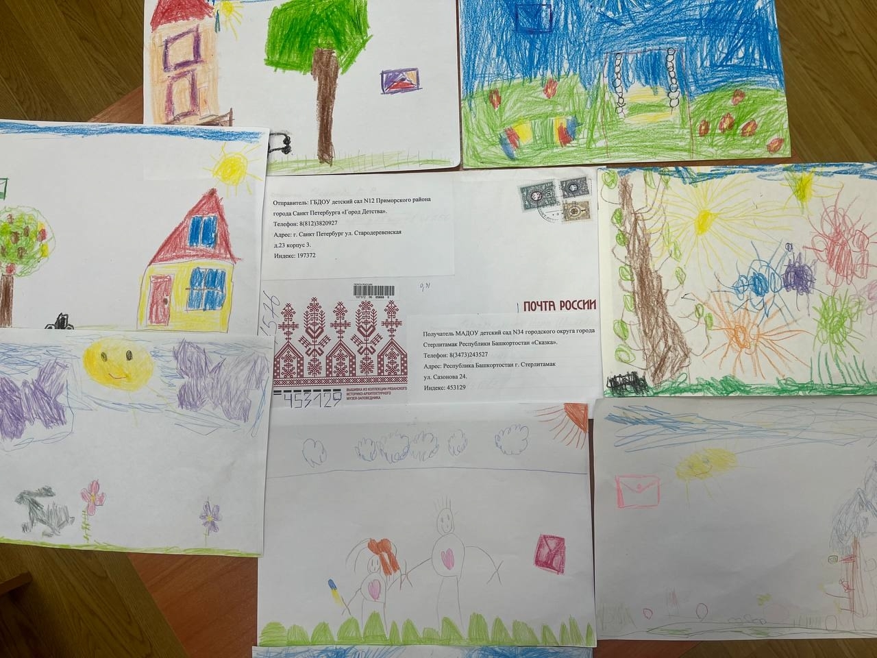 Недавно наши юные корреспонденты обменялись письмами с воспитанниками детского сада №34 «Сказка» из города Стерлитамак Республики Башкортостан. Ребята поделились своими яркими впечатлениями о прошедшем лете, вложив в рисунки все эмоции и переживания. Обмен письмами-картинками вызвал настоящий восторг у детей обеих групп — так трогательно и искренне малыши рассказывают о себе через искусство.