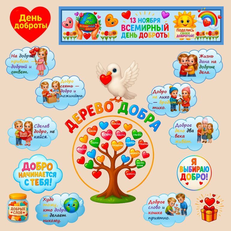 13 ноября в нашем детском саду состоялось особенное мероприятие – День доброты. Этот замечательный праздник стал настоящим открытием для всех воспитанников, ведь доброта – одно из важнейших качеств, которое необходимо воспитывать с ранних лет.